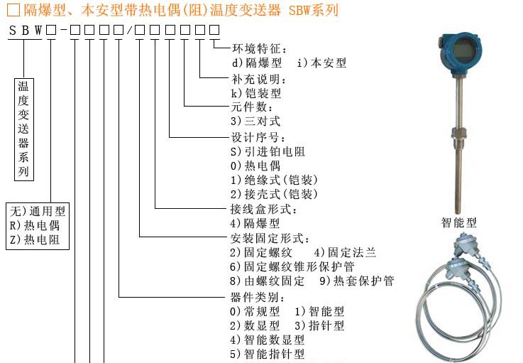 隔爆型、本安型帶熱電偶(阻)溫度變送器SBW系列