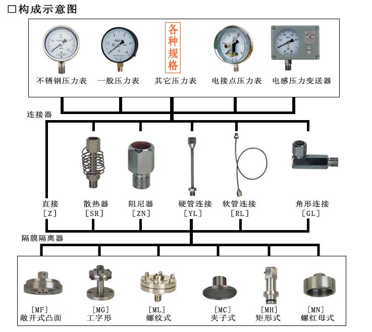 為使通用型壓力表能適用于測(cè)量強(qiáng)腐蝕、高溫、高粘度、易結(jié)晶、易凝固、有固體浮游物的介質(zhì)壓力以及必須避免測(cè)量介質(zhì)直接進(jìn)入通用型壓力儀表和防止沉淀物積聚且易清洗的場(chǎng)合,應(yīng)必須采用由隔膜隔離器與通用型壓力儀表組成一個(gè)系統(tǒng)的隔膜表。