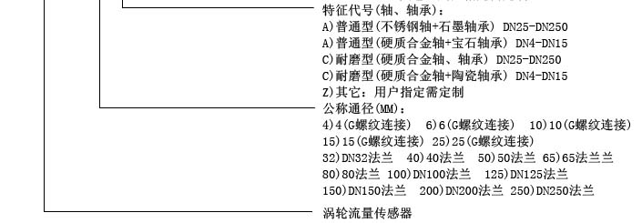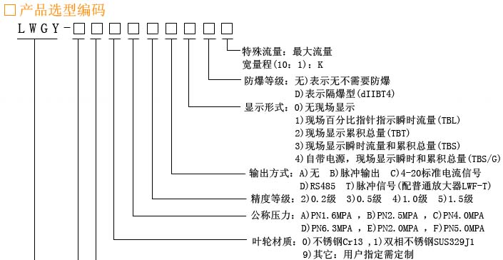 四、由選定的公稱通徑、基本誤差限(精度等級)和公稱壓力,按照“選型編碼”的內(nèi)容,選定流量計型號。