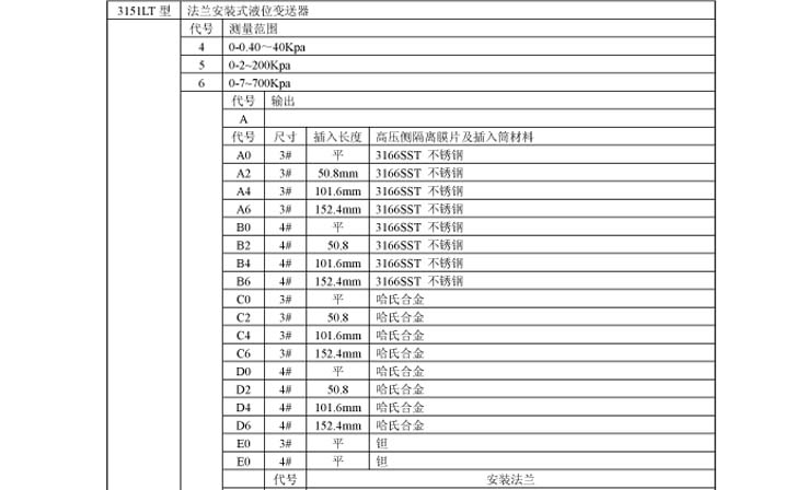 ■第二部分 選型和訂貨資料(3151LT型變送器法蘭式液位變送器)