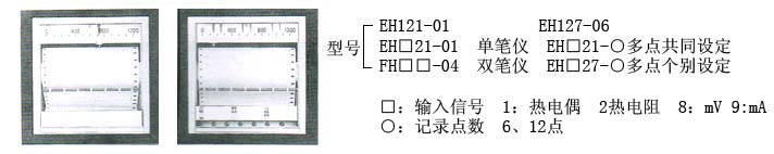□內(nèi)填入輸入點(diǎn)數(shù),輸入點(diǎn)數(shù)6,12,24點(diǎn)時分別填6,12,24.(例:mV輸入,6點(diǎn)記錄儀為EH800-06)。