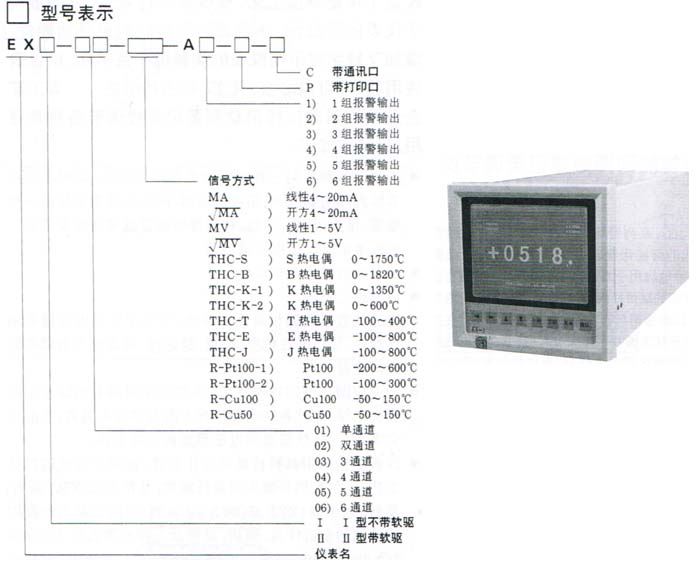 EX型無(wú)紙無(wú)筆記錄儀摒棄了傳統(tǒng)記錄儀中使用的記錄筆和記錄紙,把工業(yè)現(xiàn)場(chǎng)的各種需要監(jiān)視記錄的輸入信號(hào),通過(guò)本機(jī)CPU數(shù)據(jù)處理,一方面在大屏幕液晶顯示屏幕上以多種形式的畫(huà)面顯示出來(lái),另一方面把這些監(jiān)察信號(hào)的數(shù)據(jù)存放在本機(jī)內(nèi)藏的大容量存儲(chǔ)芯片內(nèi),以便在本記錄儀上直接進(jìn)行數(shù)據(jù)和圖形查詢(xún)、翻閱和打印。帶有軟磁盤(pán)驅(qū)動(dòng)的EXII型無(wú)紙記錄儀還可將這些數(shù)據(jù)進(jìn)行拷盤(pán)存檔,用戶(hù)可用我們提供的上位機(jī)軟件,對(duì)已記錄數(shù)據(jù)的軟盤(pán),在上位機(jī)上重現(xiàn)歷史數(shù)據(jù)和歷史曲線(xiàn)。本機(jī)可配有RS422/RS485串行通信標(biāo)準(zhǔn),以及相關(guān)軟件進(jìn)行實(shí)時(shí)的或歷史的數(shù)據(jù)通信、曲線(xiàn)和列表顯示等。其特點(diǎn)如下: