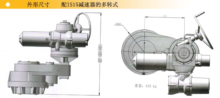 注:1)整體尺寸參見多轉(zhuǎn)式外形尺寸