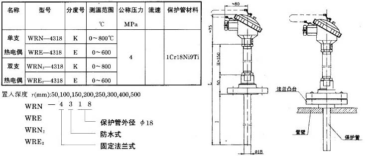 套管式熱電偶WR系列